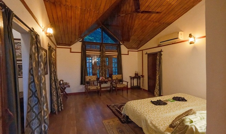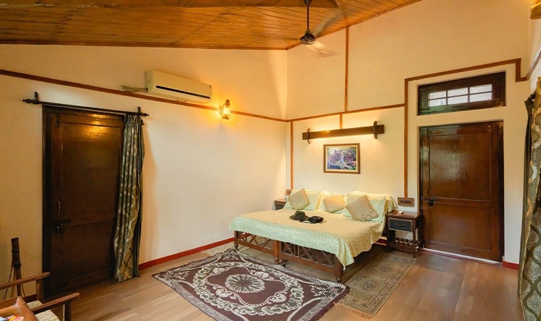 Early morning rays and chirping birds wake you up from your slumber in Imran's big, spacious yet cozy rooms. Every room has an adjoining balcony, where one can sit and savour the morning cuppa with singing birds and foraging deer.